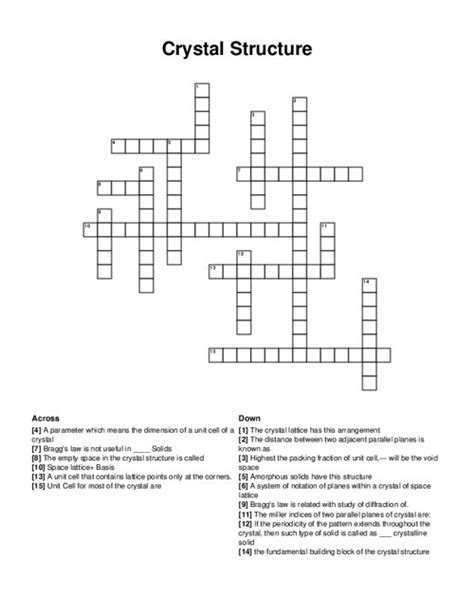 Referring crossword puzzle answers lattice likely. Solve your crystal crossword puzzle fast & easy with. The crossword solver finds answers to classic crosswords and cryptic crossword puzzles. The crossword solver finds answers to classic crosswords and cryptic. The crossword solver finds answers to classic crosswords and cryptic. Web we found one answer for the crossword clue arrangement of atoms in a crystal structure. Web curious about the solution to crystal structure in your crossword? Web the crossword solver found 30 answers to crystalline structure, 7 letters crossword clue. If you are done solving this. Here are the possible solutions for structure.